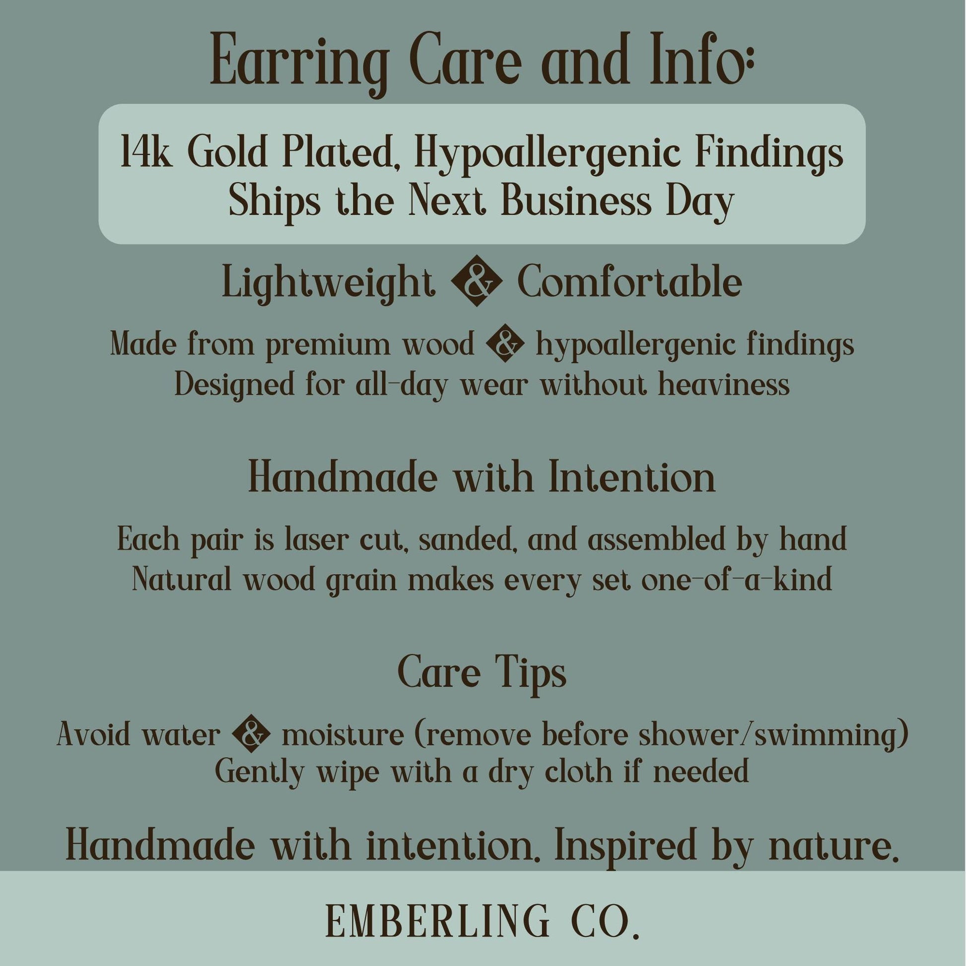 • Materials: Sustainably sourced wood, Czech glass bead, 14k gold-plated findings