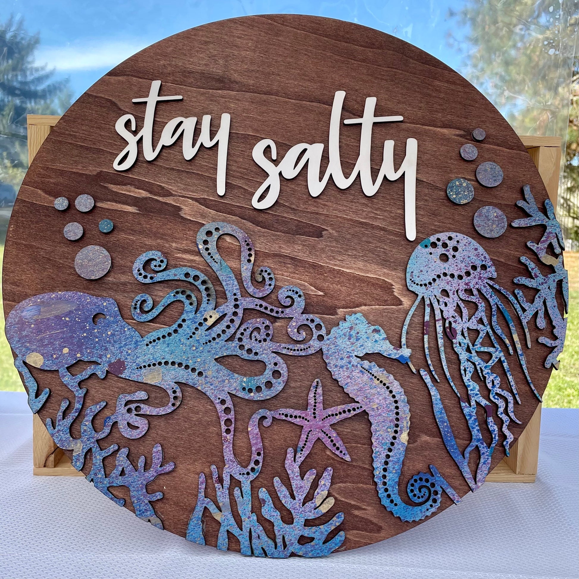 Stay Salty Sign | Ocean Themed Sign | Beach Sign | Round Painted Sign