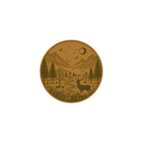 Scenic Wilderness Landscape leather patch hat with mountain and forest design. Laser-cut Pacific Northwest scenery on premium trucker hat. Handcrafted for nature lovers and outdoor explorers. Celebrates wild places and natural beauty. Detailed artwork, durable patch, adjustable fit.